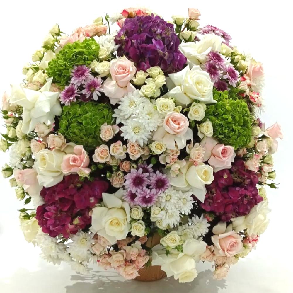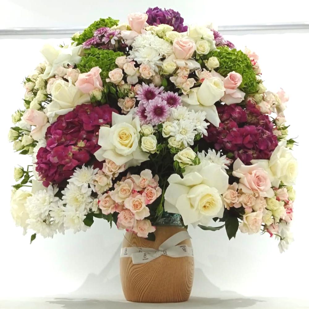 فازة كبيرة جدا ومنسقة بعناية من وردالهايدرنجا والكريز وبيبي روز والروز
