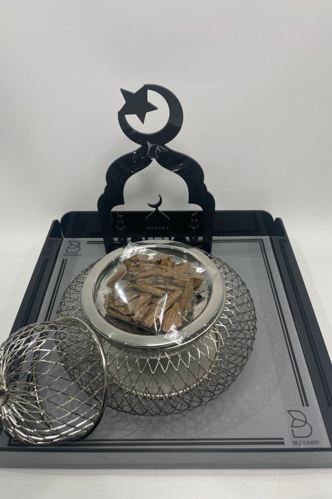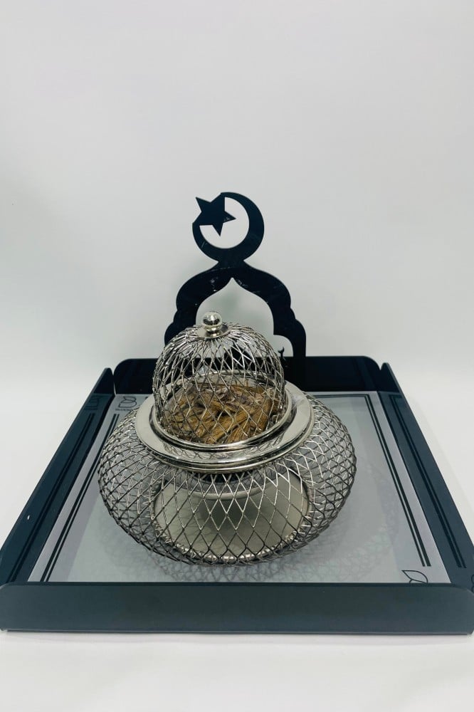 هدية جميلة عبارة عن صينيه من الاكريلك مزينة بثيم رمضاني