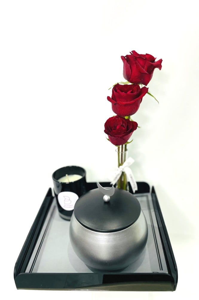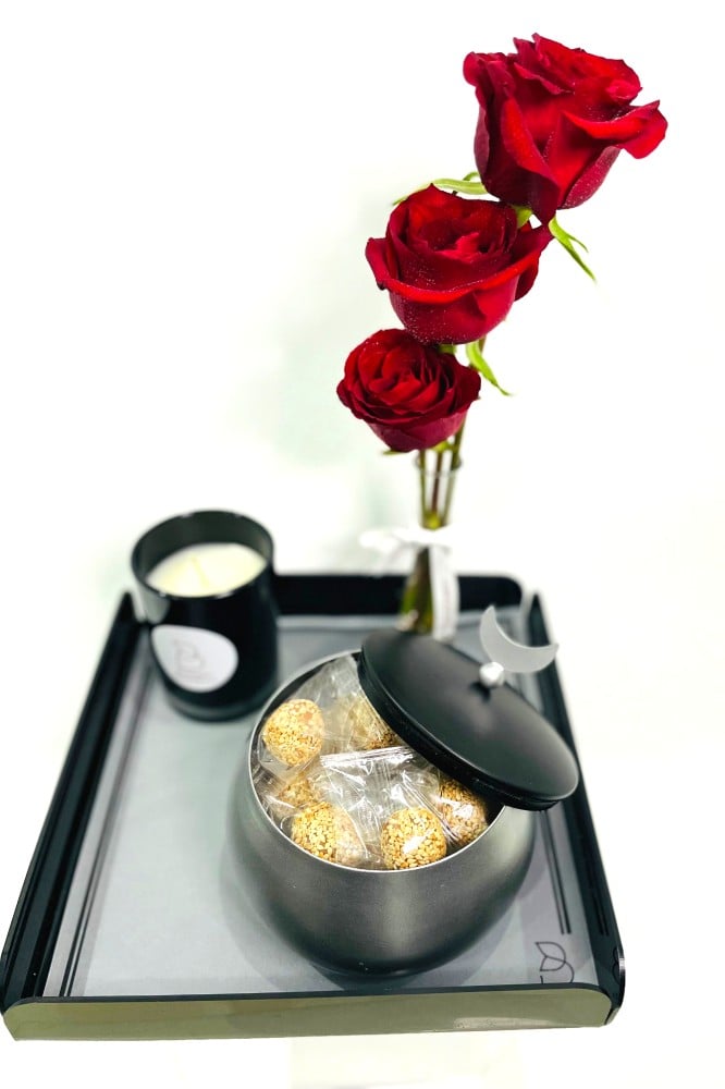 وشمعة برائحة هادئة مع مجموعة من ورود الروز بالوان متعددة 🌹