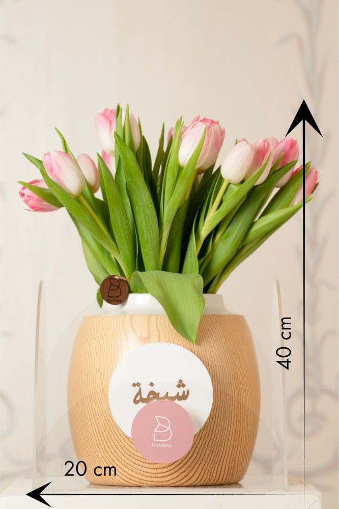 - تحتوي فازة توليب على باقة توليب طبيعي باللون الوردي، الذي يعكس الجمال والبهجة، مما يجعلها خيارًا مثاليًا لكل مناسبة خاصة.