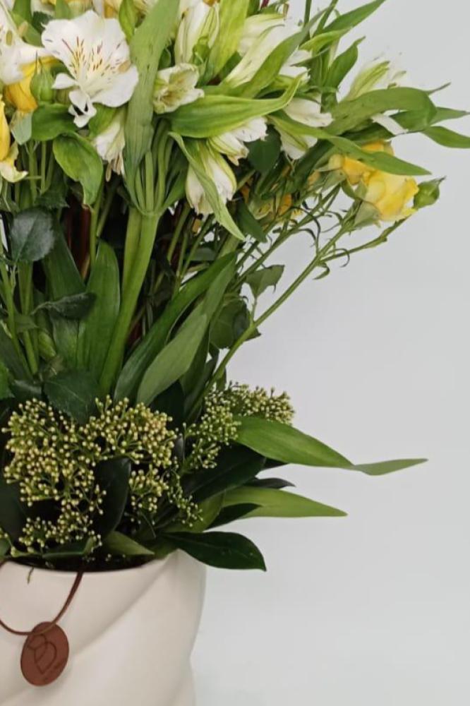 فازة من السيراميك منسقة بكل حب من ورد الستروميريا
